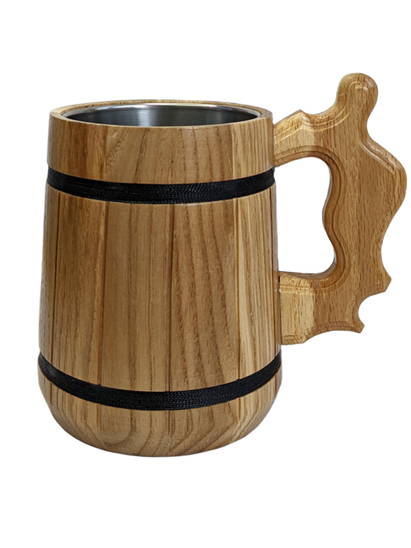 Mug of beer wooden with metal insert