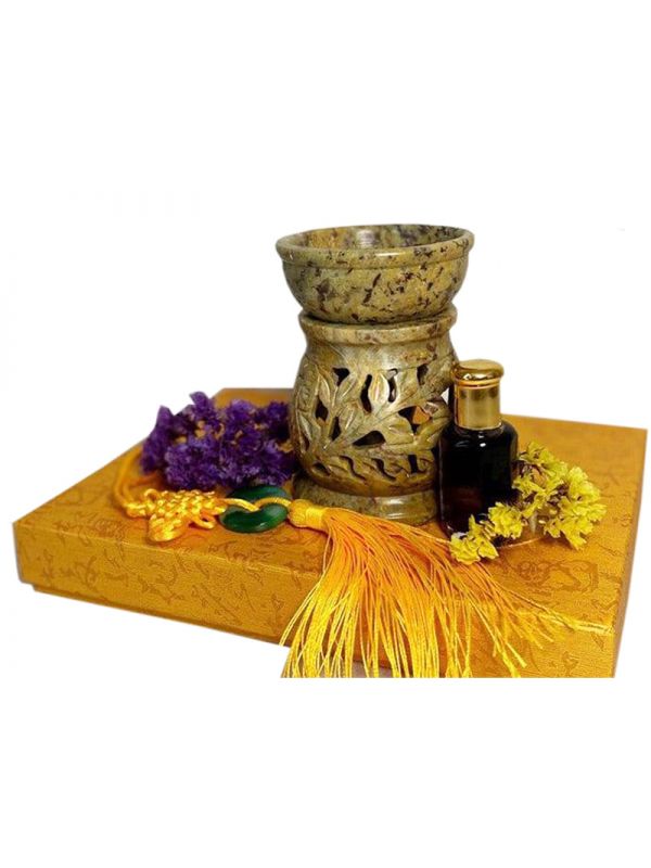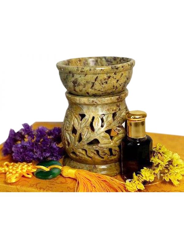 Оригінальна, кам'яна аромалампа із агальматоліта допоможе Вам створити атмосферу тепла та затишку в приміщенні. Модель прикрашена візерунками у вигляді листя - знаком життєвої сили і відданості.