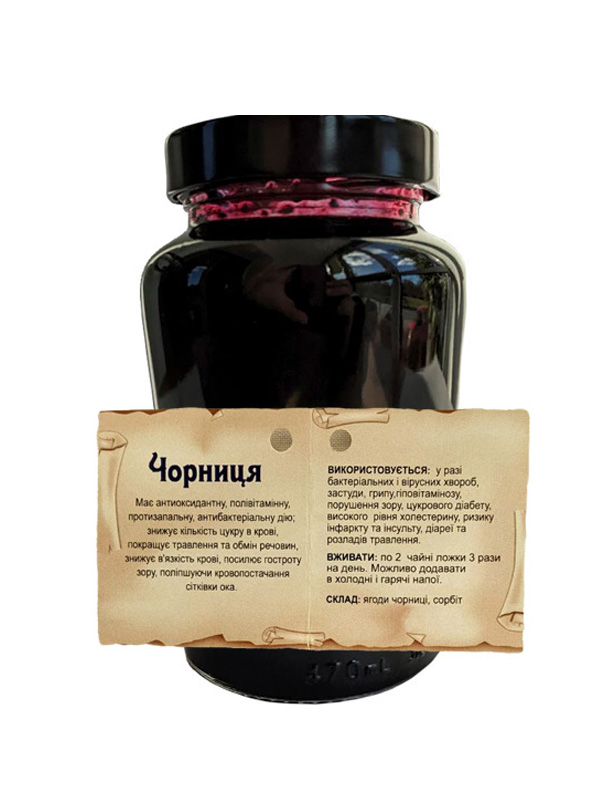 Насолоджуйтеся натуральним смаком природи з нашим варенням з чорниць. Цей продукт - це абсолютна розкіш для вашого смакового рецептора. Ми використовуємо тільки найсвіжіші та найсолодші чорниці, щоб створити це чудове варення.