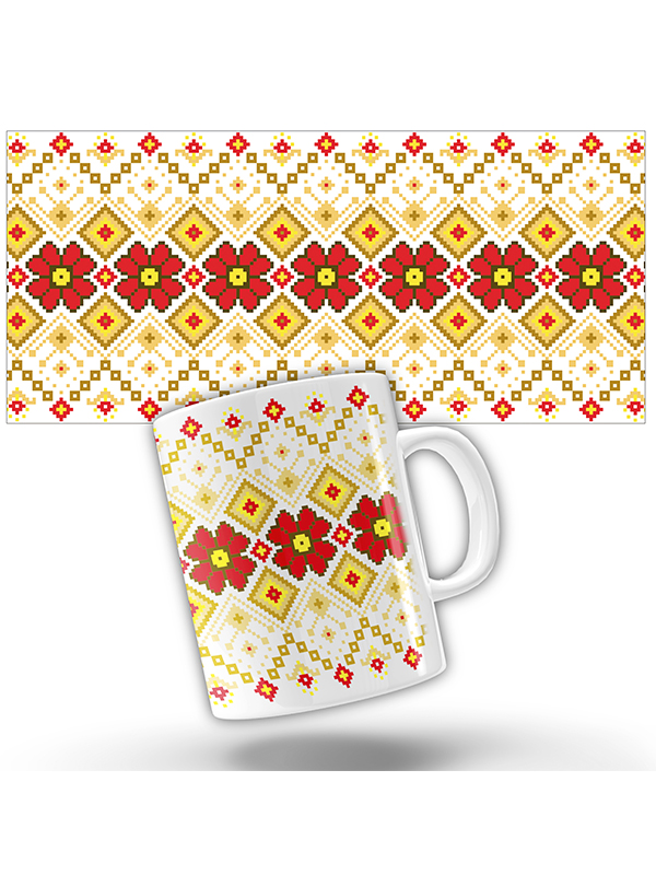Орнамент, зображений на чашці притаманний гуцульським традиціями Карпатської вишивки. Загалом же в гуцульській вишивці збереглась і постійно зазнавала розвитку давня геометрична основа. Гуцульські майстри виявили глибоке розуміння краси, своєрідної поезії геометрично–графічної лінії, гармоній форми і ритму.