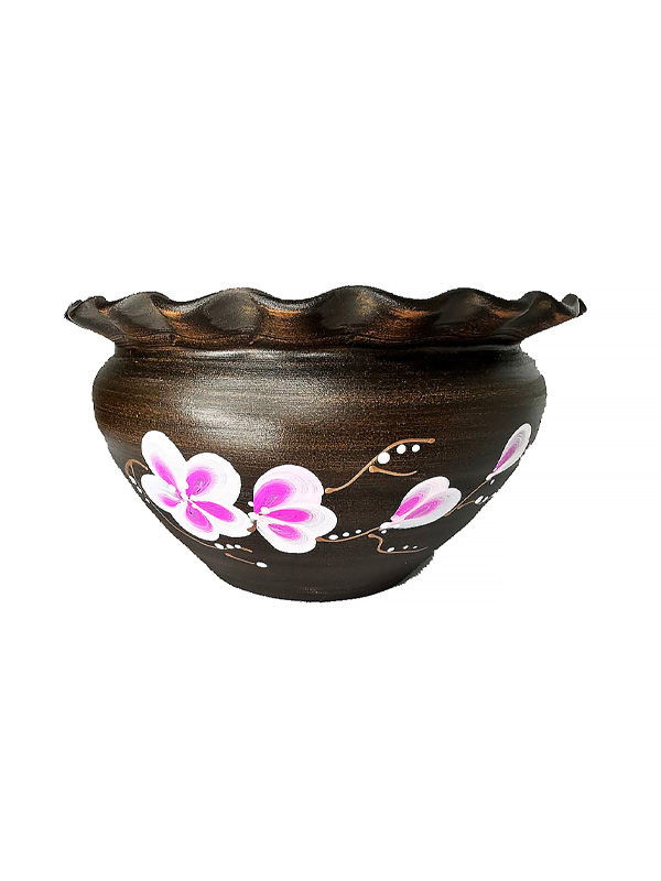 Макітра “Сакура хвилька” 2,5 л — це традиційний український глиняний посуд, який поєднує функціональність, міцність та естетику. Виготовлена з натуральної глини, вона ідеально підходить для приготування та подавання вареників, тіста, салатів, соусів, м'яса та інших страв. Оригінальний дизайн із хвилястим орнаментом та ніжними мотивами сакури робить макітру стильним елементом кухонного інтер'єру. Об’єм 2,5 літра дозволяє використовувати її як у побуті, так і для святкового столу.