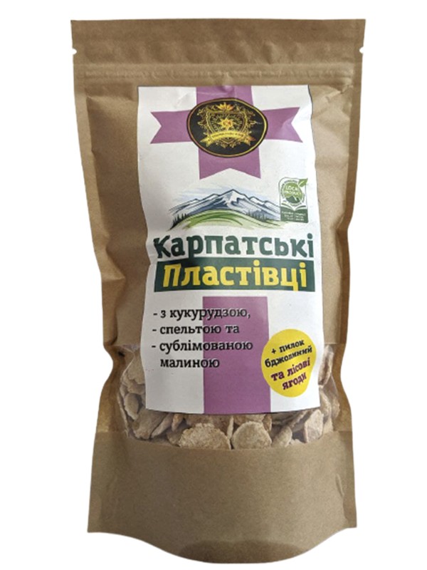Сніданок має бути корисним та поживним, кукурудзяні пластівці вироблені з натуральних зернових культур Карпат з додаванням бджолиного пилку та лісових ягід. Чудово смакує з кефіром, ряжанкою чи закваскою. Тільки натуральні складові. Без барвників та консервантів.