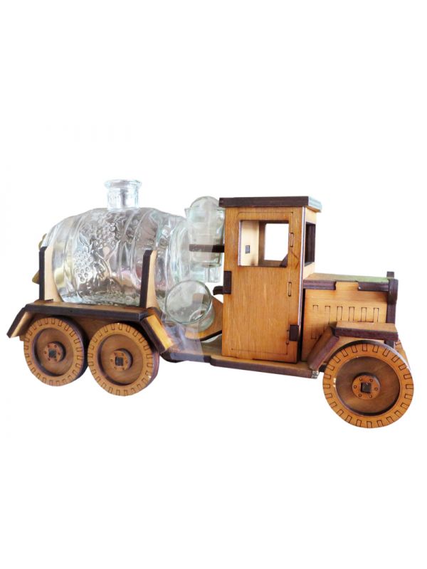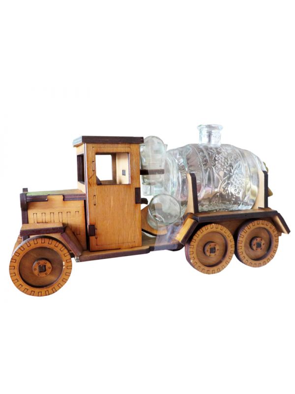 Дерев'яний бар Машина з чарками — оригінальний подарунок для любителів спиртних напоїв. Така підставка гарантує компактне розміщення аксесуарів.