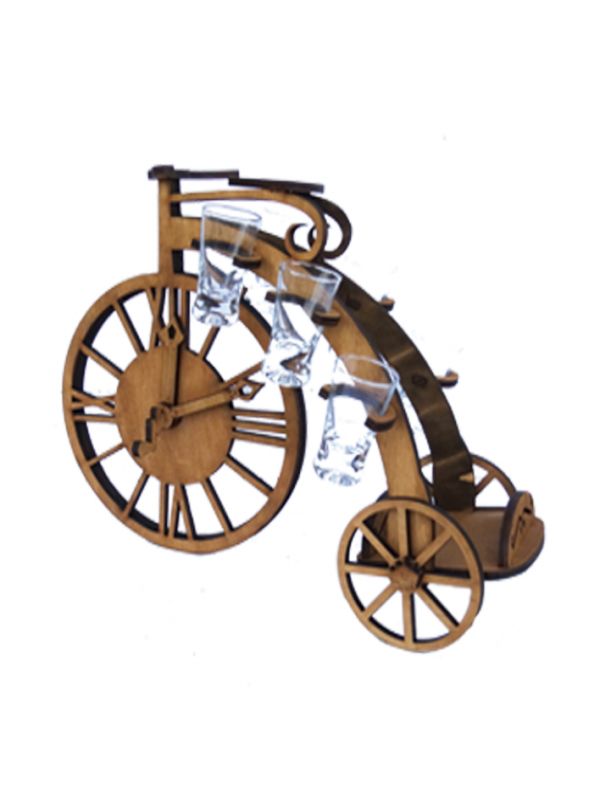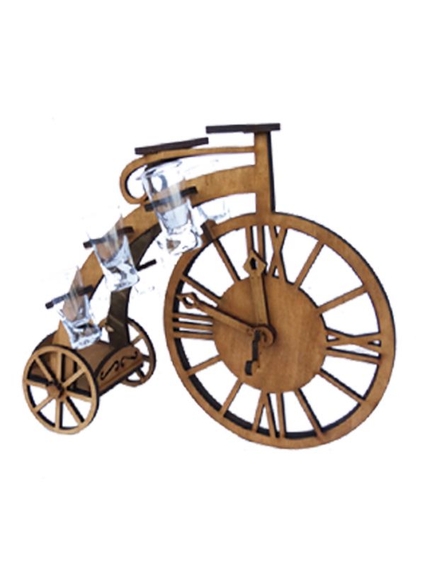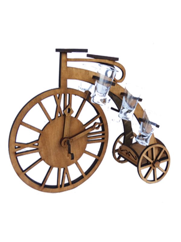 Дерев'яний бар Rover Годинники виготовлений у формі старовинного велосипеда з великим переднім колесом й стане прикрасою інтер'єру або святкового столу.
