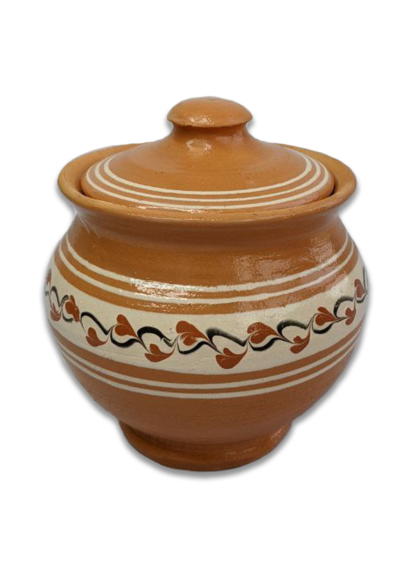 Цей глиняний горщик вироблений з опішнянської кераміки вручну, він прикрашений колоритним орнаментом. З нього приємно ласувати картопляну печеню з грибочками чи куркою, картоплю по-селянськи, запікати невеличкі порції ковбаски. Оцінить людина всіх поколінь. :)