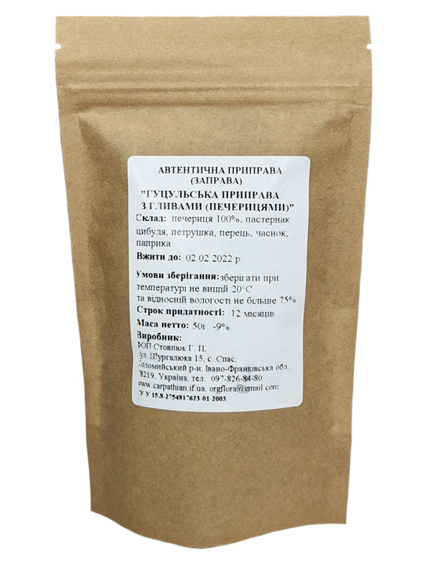 Гуцульська приправа з печерицями виготовлена за особливими карпатськими рецептами та не містить штучних домішок.