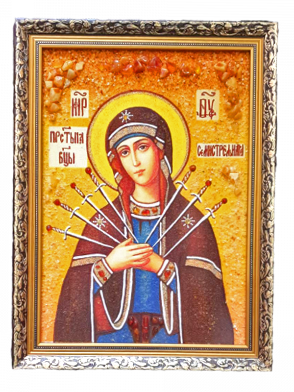 Ікона з бурштину Богородиця Семистрільна KD008785