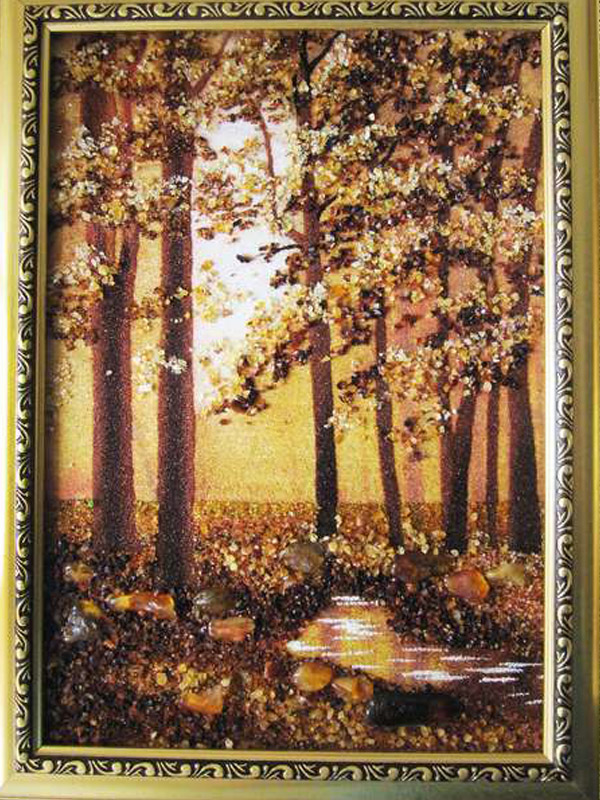 Картина середнього розміру з оригінальним оформленням - вона виконана з каменів бурштину.