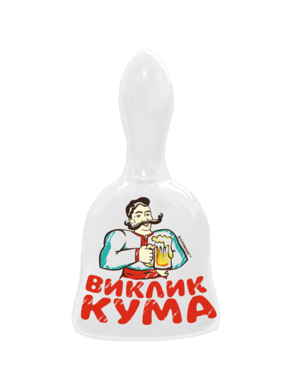 Оригінальний, якісний керамічний дзвіночок біло кольору з написом "Виклик кума".