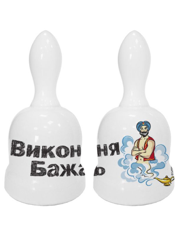 Оригінальний, якісний керамічний дзвіночок білого кольору з написом "Виконання бажань".