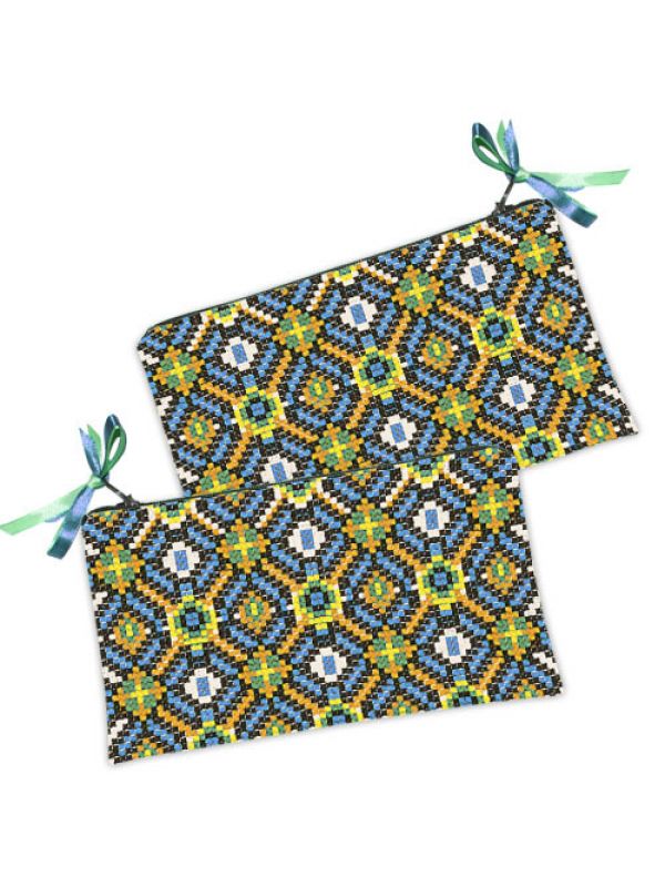 Якісна косметичка "Клітинки" на блискавці, виготовлена з тканини з принтом вишивки в українському стилі, стане вашою вірною помічницею та оригінальним аксесуаром.