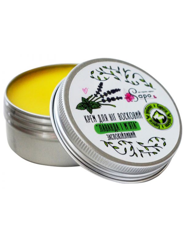 Крем для ніг восковий "Заспокійливий" "Лаванда і м'ята" виготовлений в Карпатах.