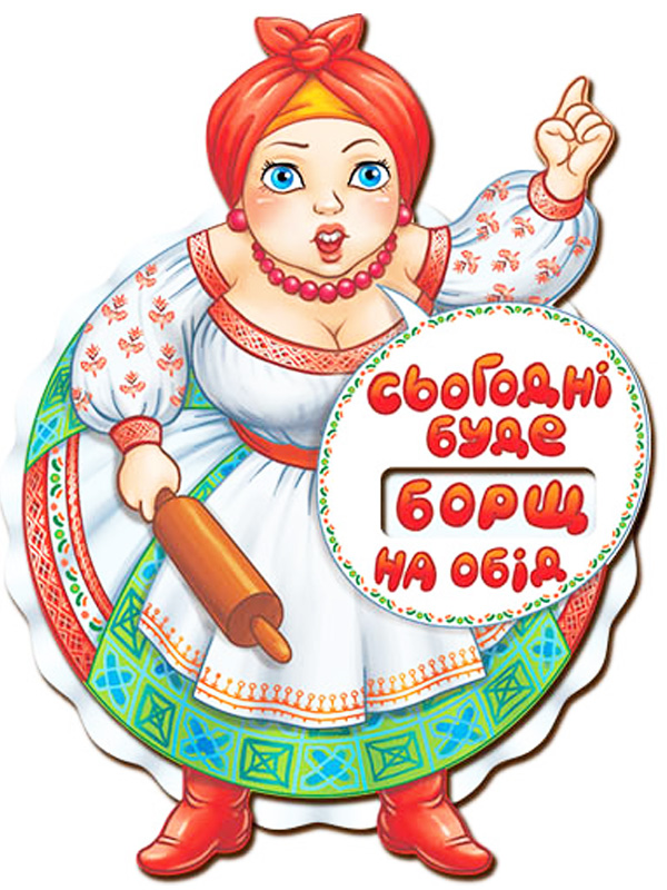 Красивий і практичний магніт "Сьогодні буде на обід" - не тільки відмінний український сувенір, але і допоможе господині у виборі обіду.
