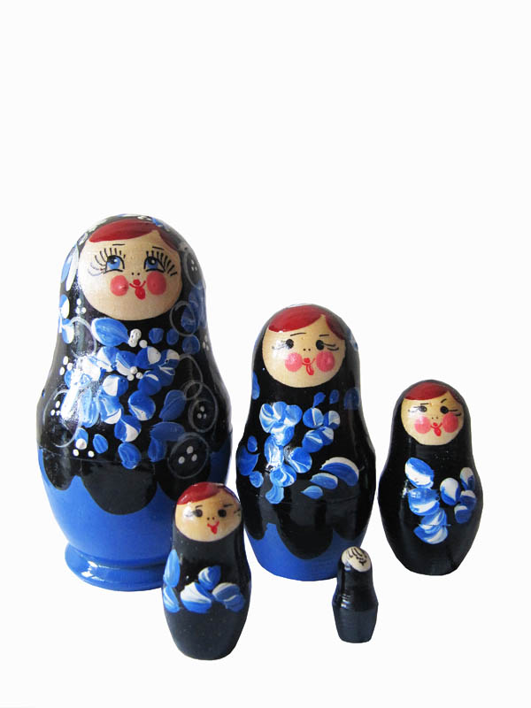 Російська матрьошка 5-ка в синих тонах. У зв'язку з ручною роботою зовнішній вигляд може дещо відрізнятись від зображеного на фото.