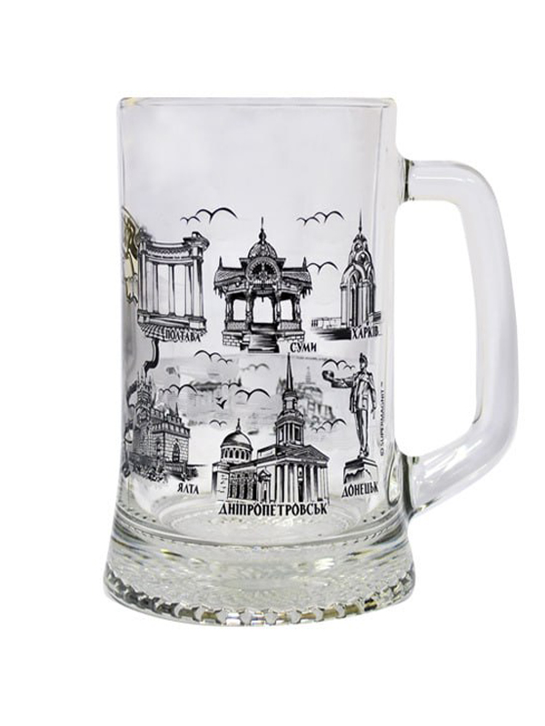 Прозорий, класичний бокал прикрашений сюжетним малюнком про області України та їх визначні пам'ятки, що стане відмінним подарунком або сувеніром.