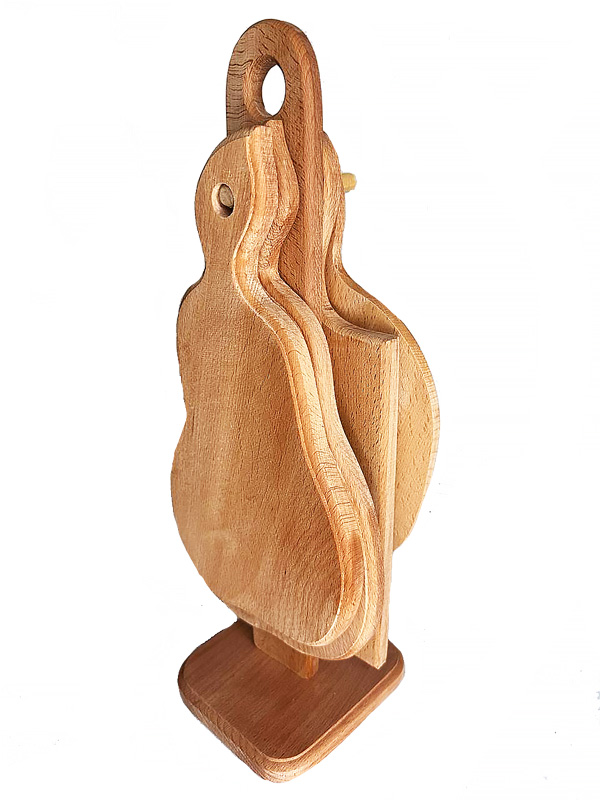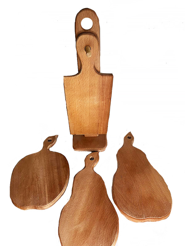 Зручний та практичний набір на підставці, який складається з 4 різних за розміром та формою дощок для нарізання.