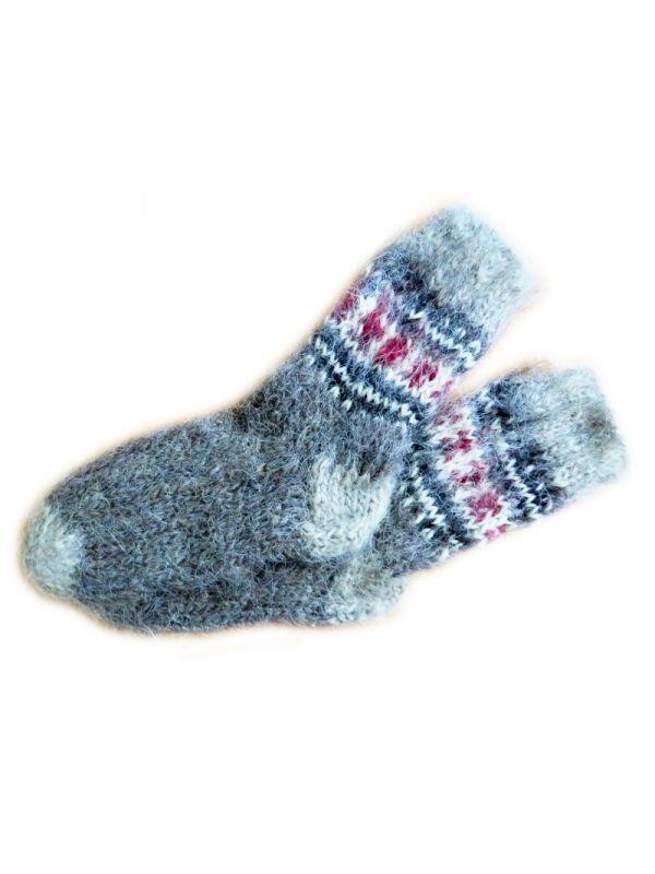 Теплі, в′язані шкарпетки ручної роботи з натуральної вовни з різнокольоровим орнаментом.