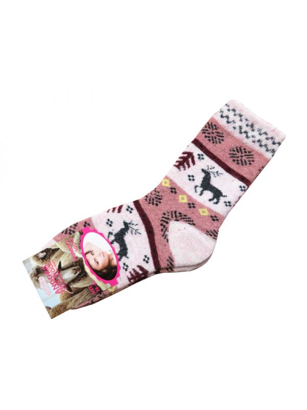 Шкарпетки жіночі з ангори Олені, темно-рожеві 951266-2