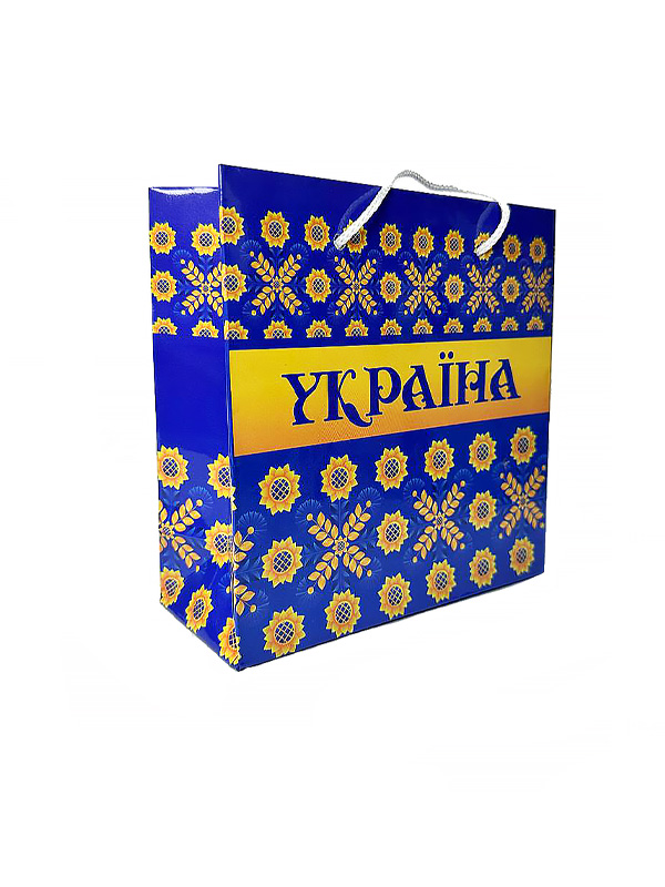 Подарунковий пакет Україна синій 165*165 (упаковка)