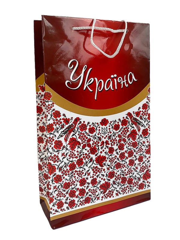 Подарунковий пакет Україна червоний (280*165) упаковка