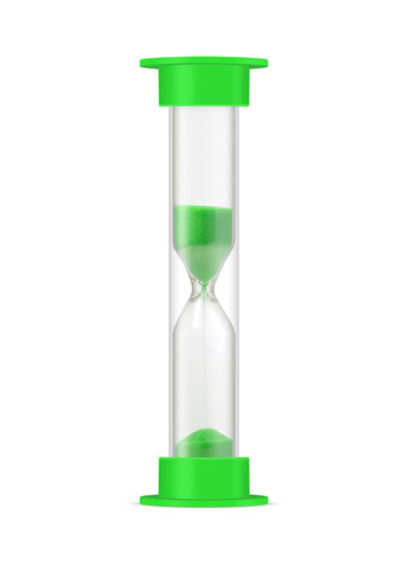 Яскравий пісочний годинник, призначений для вимірювання відрізку часу - 1 хвилина.