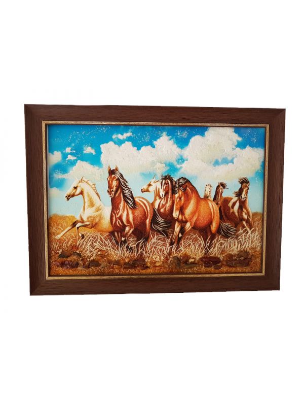 На нашому сайті ви можете купити картину з бурштину 30*50 см Коні у полі за доступною ціною оптом чи вроздріб з доставкою по Україні.