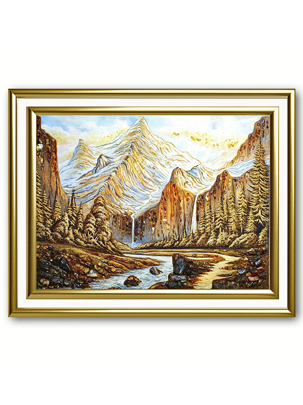 На нашому сайті ви можете купити картину з бурштину 60*80 см Річка біля гір за доступною ціною оптом чи вроздріб з доставкою по Україні.