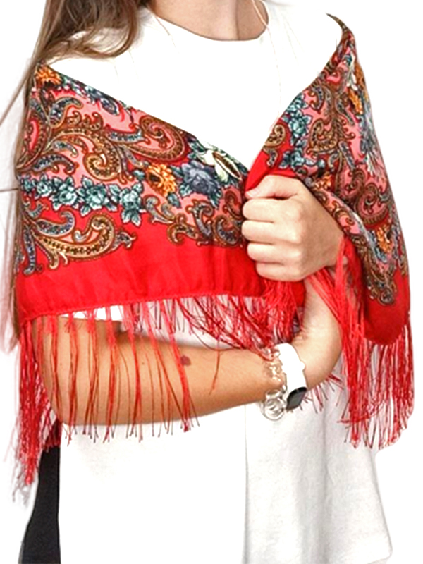 Червона хустина з українським квітковим принтом (в асортименті).