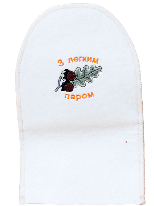 Рукавиця для лазні та сауни "З легким паром" виготовлена зі штучної повсті товщиною 3 мм.