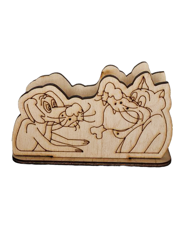 Красива підставка для серветок зі звірятами Вовк і пес, виготовлена з дерева стане чудовою прикрасою до вашого столу.