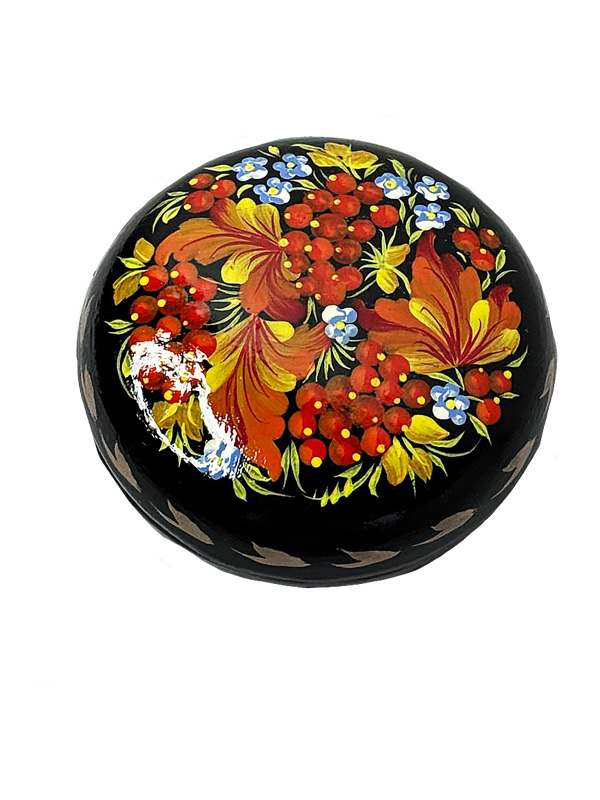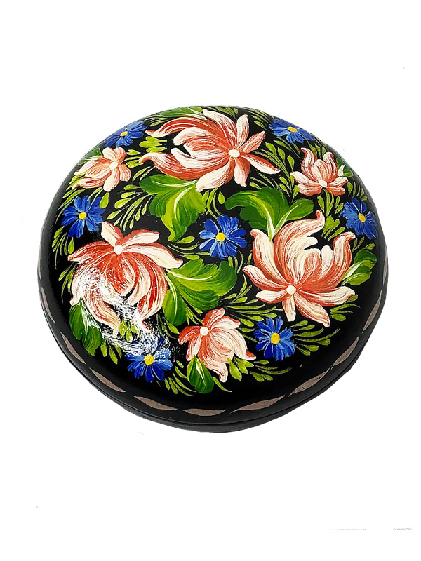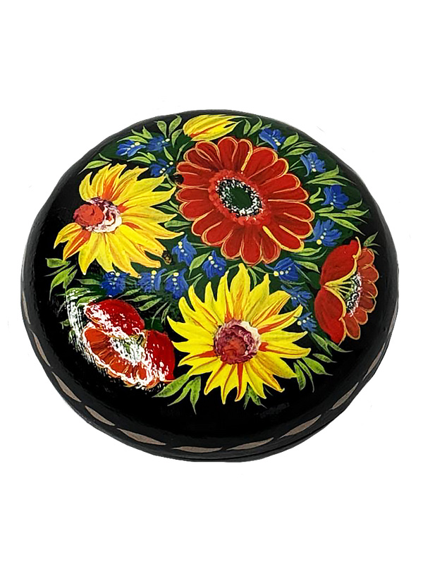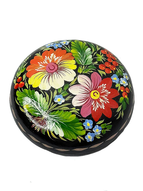 Оригінальна кругла дерев'яна шкатулка, розписана вручну, оформлена в стилі класичного українського народного мистецтва петриківського розпису. Зробіть унікальний подарунок на будь-яке свято. Додайте трохи етнічного мистецтва до свого домашнього декору або зробіть ідеальний подарунок друзям і родині на День подяки, весілля чи день народження.