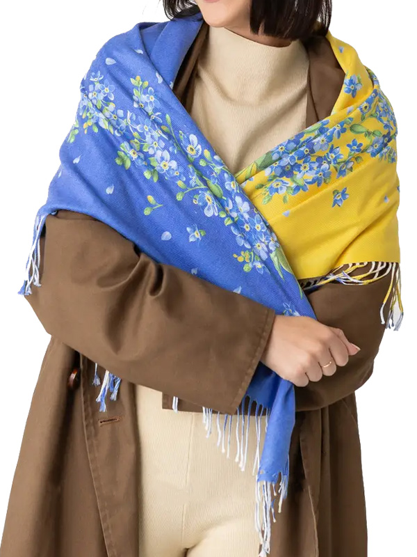 У нашому магазині ви можете купити теплу вовняну хустку в патріотичному жовто-блакитному кольорі З квітами оптом чи вроздріб.