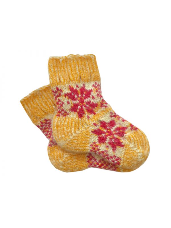 М'які, шерстяні дитячі шкарпетки №3 виготовлені з вовняної нитки та прикрашені зимовим візерунком.