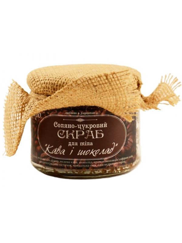 Соляно-цукровий скраб для тіла на кавово-шоколадній основі подарує відчуття насолоди. Продається в красивій фірмовій упаковці.