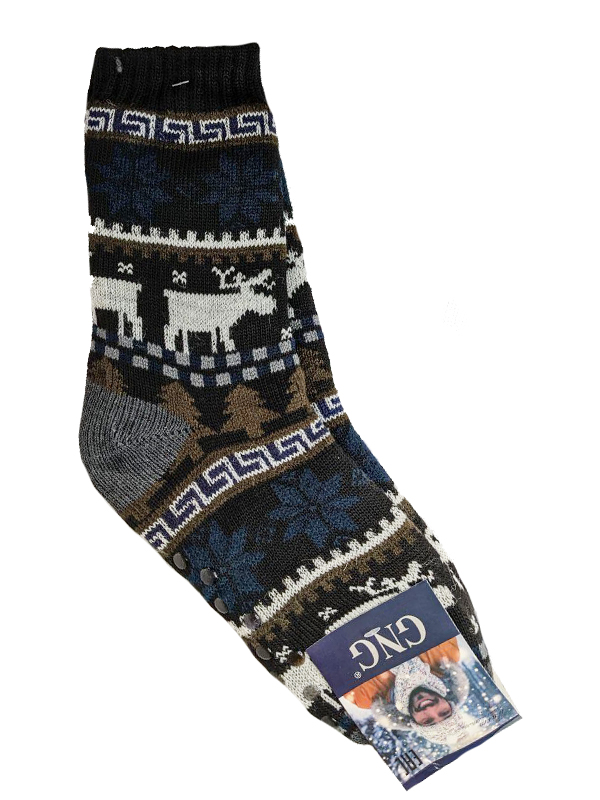 Теплі шкарпетки прикрашені зимовим малюнком у різних тонах.