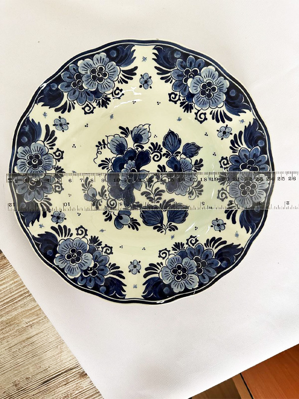 Розкішна вінтажна тарілка діаметром 24 см — справжній шедевр європейського порцелянового мистецтва середини XX століття. Вишуканий класичний дизайн у глибокому кобальтово-синьому кольорі з багатою квітковою композицією в центрі та делікатним квітковим бордюром. Яскравий контраст білосніжної основи та насиченого синього декору створює ефектну, святкову атмосферу. Ідеальна як колекційний екземпляр, елемент сервізу або оригінальний подарунок для поціновувачів антикваріату. Стан відмінний, без сколів, тріщин та потертостей. Діаметр 24 см. Вінтаж, Європа, середина XX століття.