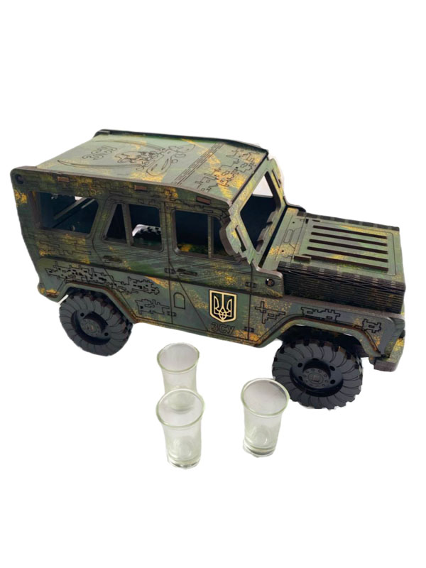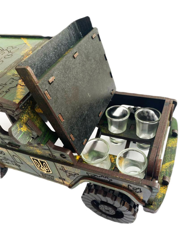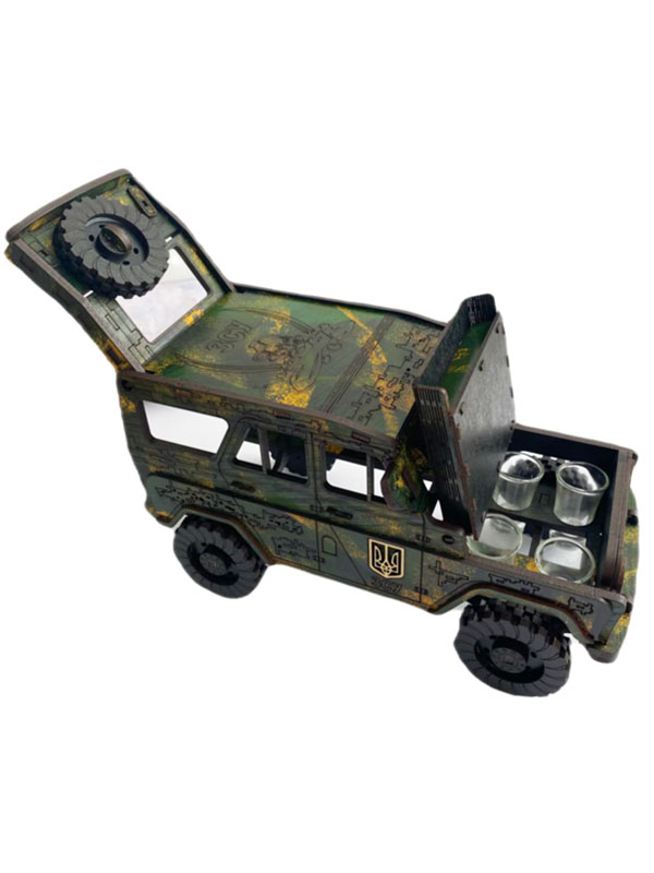 Дерев'яний бар УАЗ - це красива, цікава й корисна річ в домі та неймовірний креативний подарунок, що обов’язково сподобається кожному чоловіку. Бар виготовлений із дерева у формі красивого УАЗ.-Машина ЗСУ-віримо в Перемогу!