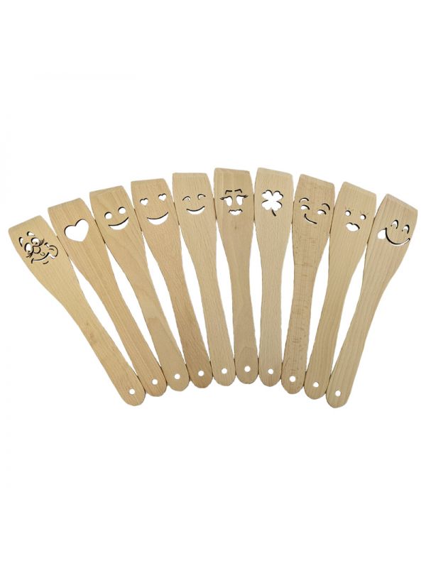 Весела дерев’яна лопатка, яка вам обов’язково знадобиться. Вона чудово підходить для того, щоб ви могли легко позбавити продукти від олії або іншого. В асортименті лопатки з різними прикольними вирізами-смайлами, виготовлені з екологічно чистого матеріалу.